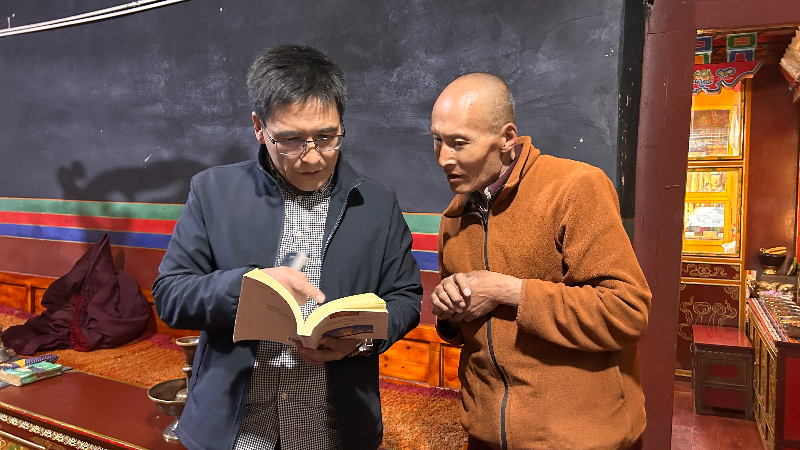 ཤར་དགོན་ལ་མཇལ་རྗེས། ཕྱིར་ལྷུན་གྲུབ་རྫོང་དུ་ཕྱིན་ནས་ཞག་སྡོད་བྱས། ལྷུན་གྲུབ་རྫོང་ནི་དུས་རབས་བཅུ་གསུམ་པར་བཏགས་པའི་ས་མིང་རྙིང་བ་ཞིག་ཡིན། ཕག་མོ་གྲུ་པ་ཏཱ་སི་ཏུ་བྱང་ཆུབ་རྒྱལ་མཚན་གྱིས་དབུས་གཙང་དུ་རྫོང་ཆེན་བཅུ་གསུམ་གྱི་ཆབ་སྲིད་སྒྲིག་གཞི་ལག་བསྟར་བྱེད་དུས། འཕན་ཡུལ་དུ་ལྷུན་གྲུབ་རྫོང་གསར་དུ་བཙུགས། ཕྱིས་ཀྱི་དགའ་ལྡན་ཕོ་བྲང་དང་བོད་ལྗོངས་གསར་བའི་སྐབས་ཀྱི་ཆབ་སྲིད་འཕོ་འགྱུར་སྐབས་ཀྱང་ལྷུན་གྲུབ་རྫོང་གི་རྫོང་མིང་སོར་བཞག་གནང་ཡོད། ལྷུན་གྲུབ་རྫོང་སྲིད་གཞུང་གི་རྒྱབ་ཕྱོགས་སུ་དགེ་ལུགས་པའི་དགོན་པ་རྙིང་བ་ཞིག་ཡོད། དགོན་པ་དེ་ནི་འཕན་ཡུལ་པ་ཚབ་ལོ་ཙཱ་བ་ཉི་མ་གྲགས་པའི་ཐུགས་སྲས་ཐང་སག་ཡེ་ཤེས་འབྱུང་གནས་ཀྱི་གནས་གཞི་སྟེ། ཐང་སག་དགའ་ལྡན་ཆོས་འཁོར་དགོན་པར་གྲགས། དེང་སང་ཀུན་གྱིས་དགའ་ཆོས་དགོན་དུ་འབོད། དཀོར་གཉེར་དགེ་འདུན་པས་དེ་ནི་མ་དག་རྒྱུན་འབྱམས་སུ་ཕྱིན་པར་སྨྲ། ཁོང་གིས་དགོན་པ་འདིར་ལྷ་ཁང་གཅིག་ལས་མེད་ཀྱང་དགོན་རྙིང་ཞིག་ཡིན་པར་གསུངས། ལྷ་ཁང་ནང་ལོགས་ཀྱི་རྒྱབ་དང་འཁྲིས་སུ་ལྷ་ཁང་ཆུང་ངུ་རེ་བཞེངས་ལུགས་ལ་དཔྱད་ན། བོད་བཙན་པོའི་སྐབས་ཀྱི་ལྷ་ཁང་གི་བཞེངས་ལུགས་དང་མཚུངས། དཀོར་གཉེར་གྱིས་གསུངས་པ་ལྟར་ན་ལྷ་ཁང་དུ་ཇོ་བོ་ལྕགས་སྒམ་གྱིས་སྲུང་བ་བཞུགས་པ་དེ་རྟེན་ཤིན་ཏུ་རྩ་ཆེ་བ་ཞིག་ཡིན།