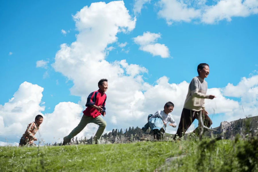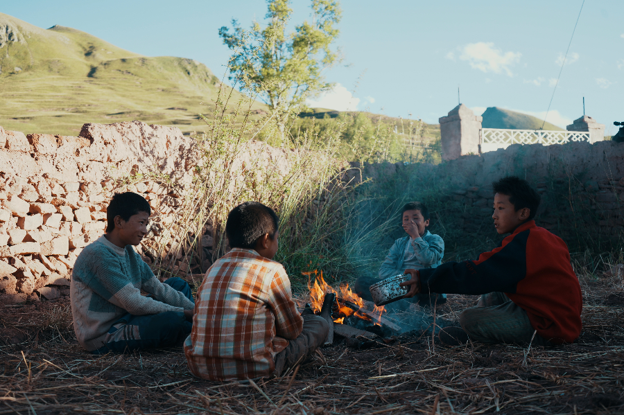 གློག་བརྙན་གྱི་མཇུག་ཏུ། བཀྲ་ཤིས་ཀྱིས་སྡེ་བ་ནས་ཁ་བྲལ་བའི་ལམ་བར་དུ་བྱིས་དུས་ཀྱི་གྲོགས་པོ་ཚོ་དང་མཉམ་དུ་རི་སྐྱེས་འབྲི་ཏ་ས་འཛིན་འཐུ་བའི་སྐྱིད་པའི་ལོ་ཟླ་དེ་དྲན།མིག་མདུན་གྱི་ཆར་སྨུག་དང་དྲན་ཤེས་ཁྲོད་ཀྱི་གསེར་མདོག་གི་འོད་སྣང་སླར་ཡང་བསྡུར་བ་ཞིག་ཏུ་གྲུབ། དངོས་ཡོད་ཁྲོད་ཀྱི་མདུན་ལམ་སྔར་བཞིན་གསལ་པོ་མེད་པ་དེ་ནི་སྡེ་བའི་ནང་སྡོད་མཁན་མེད་པའི་ཁང་རྙིང་ལྟར། ཚང་མ་ཉོ་སྒྲུབ་དང་བོགས་མར་གཏོང་ལེན་བྱེད་མགོ་ཚུགས་པ་དང་། ཁང་རྙིང་བསྐྱར་བཟོ་བྱས་ཏེ་ཡུལ་སྐོར་པས་བོད་ཀྱི་ཡུལ་སྲོལ་མྱོང་རོལ་བྱེད་ཡུལ་ཞིག་ཏུ་གྱུར། དེ་ལས་མི་རབས་ནས་མི་རབས་བར་བརྒྱུད་ཡོང་བའི་སྲོལ་རྒྱུན་གྱི་འཚོ་བ་སྐྱེལ་སྟངས་དེ་འབྱུང་འགྱུར་གང་འདྲ་ཞིག་ཏུ་བསྐྱོད་རྒྱུ་ཡིན་པ་སུས་ཀྱང་མི་ཤེས། ཡིན་ནའང་དྲན་ཤེས་ཁྲོད་ཀྱི་བྱིས་དུས་དེ་རིམ་བཞིན་ཡལ་ཏེ། རི་བོའི་ཕ་རོལ་བརྒལ་པའི་གཞོན་ནུ་ཚོའི་སེམས་ནང་གི་རྟག་བརྟན་གྱི་སྟོབས་ཤུགས་དང་དད་པ་རུ་གྱུར་རོ། །