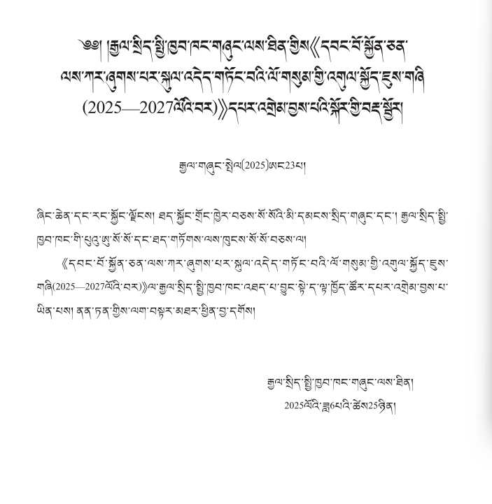 རྒྱལ་སྲིད་སྤྱི་ཁྱབ་ཁང་གཞུང་ལས་ཐིན་གྱིས《དབང་བོ་སྐྱོན་ཅན་ལས་ཀར་ཞུགས་པར་སྐུལ་འདེད་གཏོང་བའི་ལོ་གསུམ་གྱི་འགུལ་སྐྱོད་ཇུས་གཞི(2025-2027ལོའི་བར)》དཔར་འགྲེམ་བྱས་པའི་སྐོར་གྱི་བརྡ་སྦྱོར།