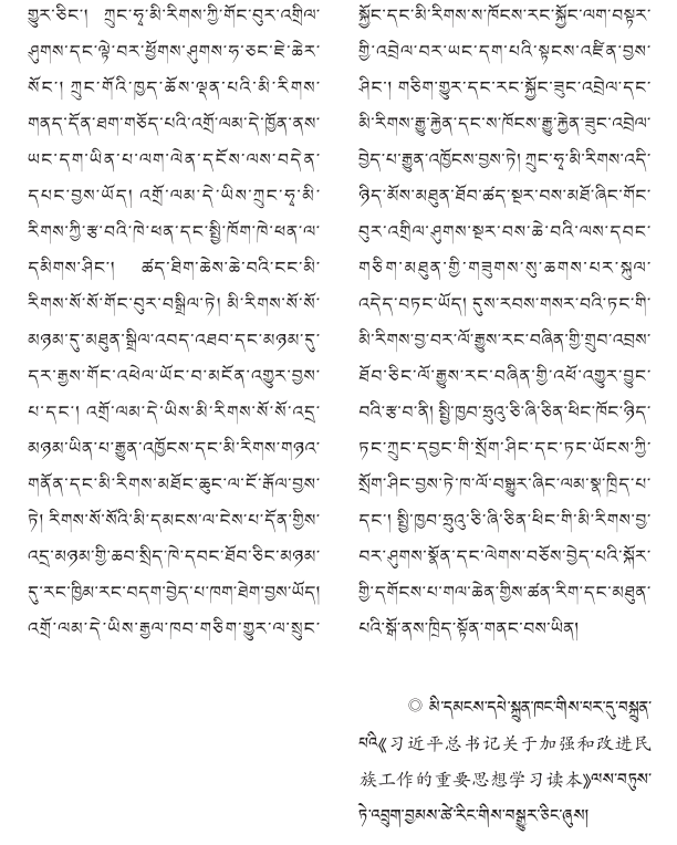 སྤྱི་ཁྱབ་ཧྲུའུ་ཅི་ཞི་ཅིན་ཕིང་གི་མི་རིགས་བྱ་བར་ཤུགས་སྣོན་དང་ལེགས་བཅོས་གཏོང་བའི་སྐོར་གྱི་དགོངས་པ་གལ་ཆེན་ནི་དུས་རབས་གསར་པའི་ཏང་གི་མི་རིགས་བྱ་བའི་རྩ་བའི་བསྲུང་བྱ་དང་འགུལ་སྐྱོད་ཀྱི་ཕྱོགས་སྟོན་ཡིན།(སྟོད)