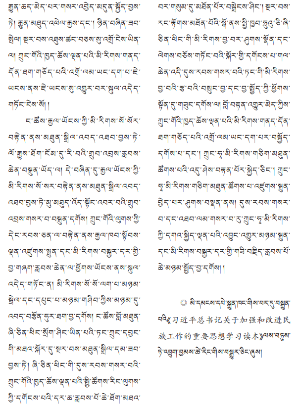 སྤྱི་ཁྱབ་ཧྲུའུ་ཅི་ཞི་ཅིན་ཕིང་གི་མི་རིགས་བྱ་བར་ཤུགས་སྣོན་དང་ལེགས་བཅོས་གཏོང་བའི་སྐོར་གྱི་དགོངས་པ་གལ་ཆེན་ནི་དུས་རབས་གསར་པའི་ཏང་གི་མི་རིགས་བྱ་བའི་རྩ་བའི་བསྲུང་བྱ་དང་འགུལ་སྐྱོད་ཀྱི་ཕྱོགས་སྟོན་ཡིན།(སྨད)
