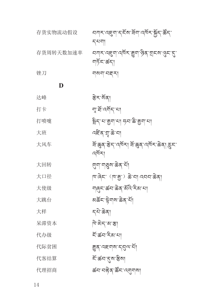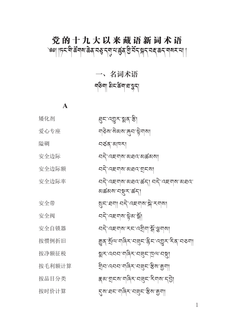 ཏང་གི་ཚོགས་ཆེན་བཅུ་དགུ་པ་ཚུན་གྱི་བོད་སྐད་བརྡ་ཆད་གསར་པ། A-B-C-D