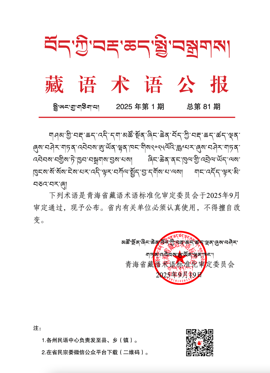 མཚོ་སྔོན་ཞིང་ཆེན་བོད་ཀྱི་བརྡ་ཆད་སྤྱི་བསྒྲགས། སྤྱི་ཨང81པ།