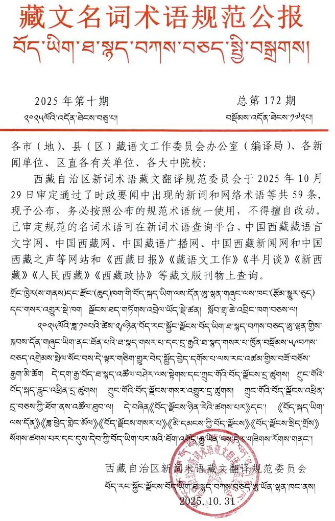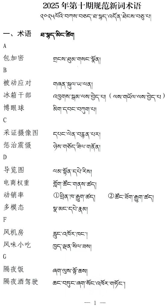 བོད་ཡིག་ཐ་སྙད་བཀས་བཅད་སྤྱི་བསྒྲགས། 2025ལོའི་འདོན་ཐེངས10པ།