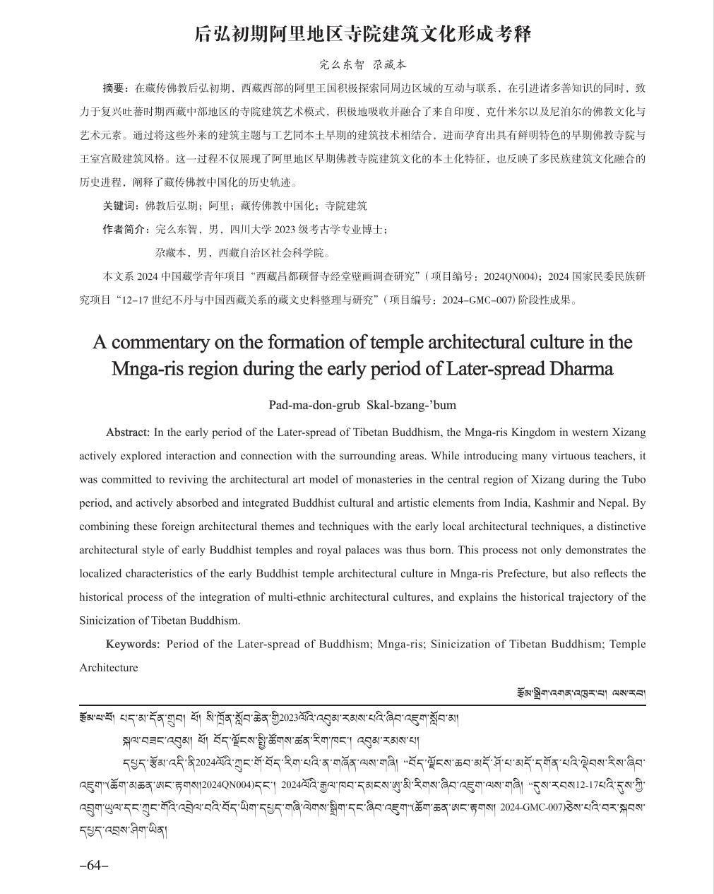 བསྟན་པ་ཕྱི་དར་གྱི་དུས་མགོར་མངའ་རིས་ཡུལ་དུ་དགོན་སྡེའི་ཨར་སྐྲུན་རིག་གནས་དར་ཚུལ་ལ་དཔྱད་པ།