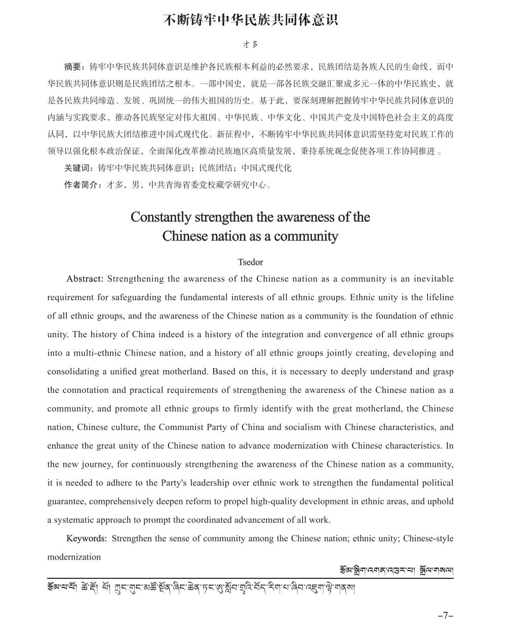 ཀྲུང་ཧྭ་མི་རིགས་ཀྱི་གཅིག་མཐུན་ཚོགས་པའི་འདུ་ཤེས་སྲ་བརྟན་དུ་གཏོང་དགོས། ཚེ་རྡོ།