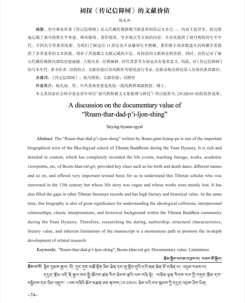 《རྣམ་ཐར་དད་པའི་ལྗོན་ཤིང》གི་ཡིག་ཆའི་རིན་ཐང་སྐོར་དཔྱད་པ། སྙིང་བྱམས་རྒྱལ།