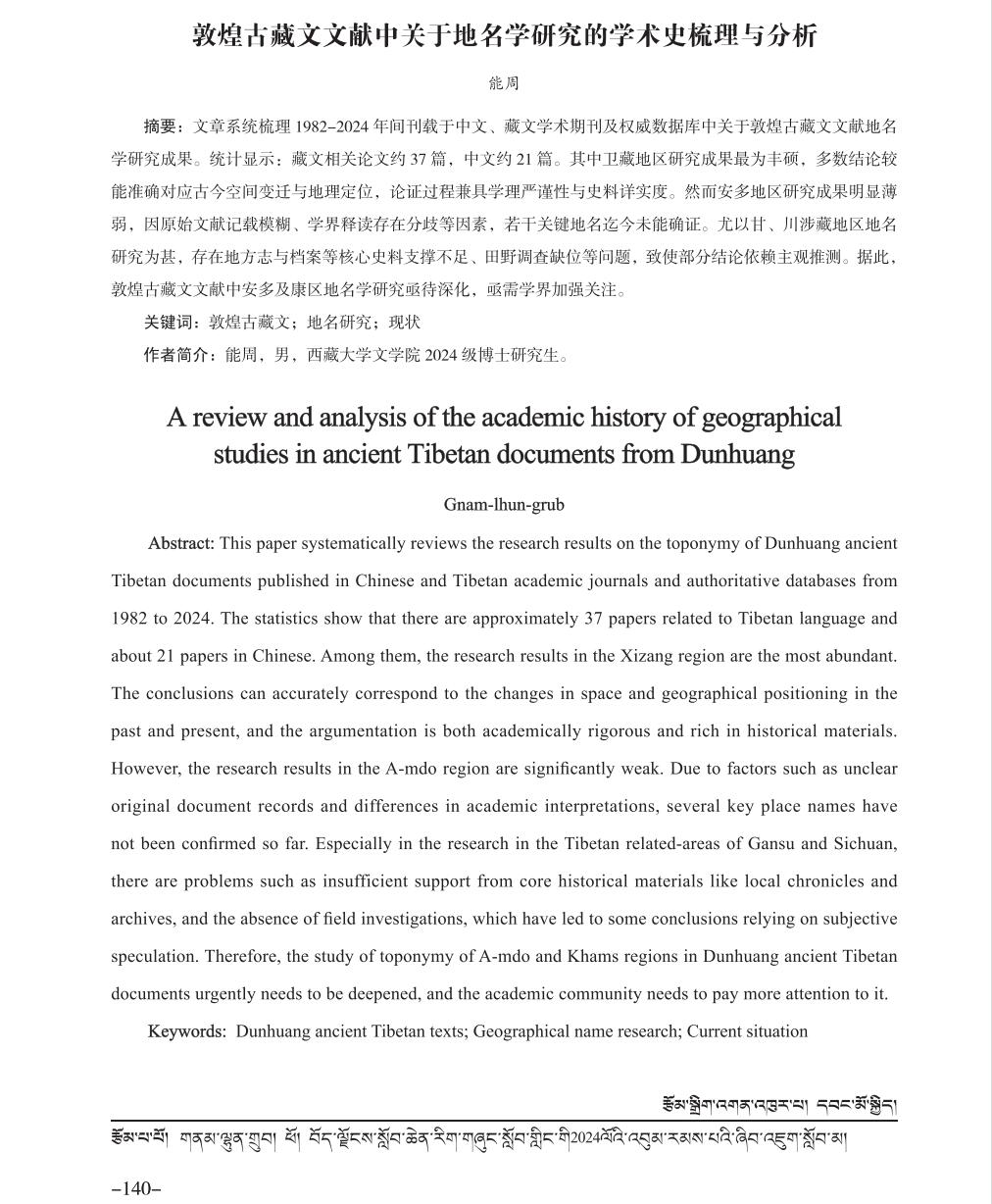 ཏུན་ཧོང་བོད་ཡིག་དཔེ་རྙིང་ལས་བྱུང་བའི་ས་མིང་ཞིབ་འཇུག་གི་ལོ་རྒྱུས་དང་གནས་བབས་ལ་དཔྱད་པ། གནམ་ལྷུན་གྲུབ།