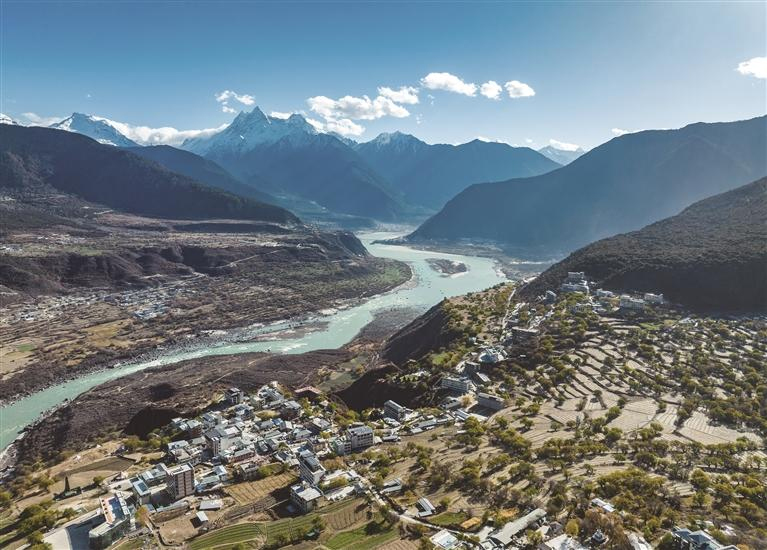 བོད་ལྗོངས་ཉིང་ཁྲི་གྲོང་ཁྱེར་སྨན་གླིང་རྫོང་ཕད་གྲོང་རྡལ་ཟུར་གསུམ་གྲོང་ཚོར་ཡར་ཀླུང་གཙང་པོའི་གྲོག་རོང་ཆེན་པོ་རྔམ་བརྗིད་ཆེ་ཞིང་། ཡུལ་མིའི་སྡོད་ཁང་དང་། བགྲོད་ལམ། གངས་རི། གདོད་མའི་ནགས་ཚལ་བཅས་གཅིག་ལ་གཅིག་རྒྱན་ལྟར་དུ་སྣང་ནས། བརྗིད་ཆགས་ལྟ་ན་སྡུག་པའི་གྲོག་རོང་གི་སྐྱེ་ཁམས་མཛེས་རིས་ཤིག་གྲུབ་ཡོད།