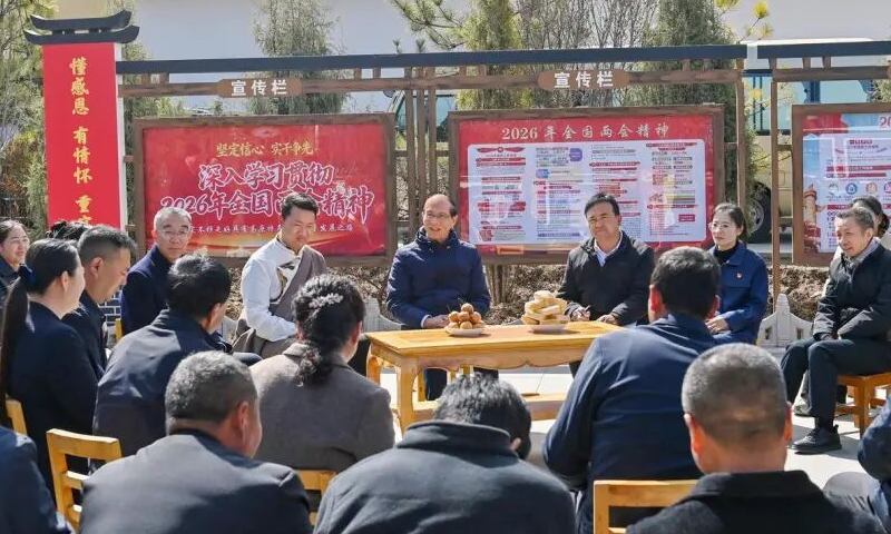 ཝུའུ་ཞའོ་ཅུན་གྱིས་མཚོ་ལྷོ་ཁུལ་ཁྲི་ཀ་རྫོང་དུ་རྒྱལ་ཡོངས་ཀྱི་ཚོགས་འདུ་གཉིས་ཀྱི་དགོངས་དོན་སྒྲོག་འགྲེལ་བྱས་ཏེ་རྟོག་ཞིབ་བྱེད་སྐབས་མི་དམངས་ལ་འཚོ་བ་སྐྱིད་པོ་རོལ་དུ་འཇུག་རྒྱུ་ནི་སྲིད་འབྲས་ཆེས་ཆེ་ཤོས་དེ་ཡིན་ཞེས་བསྟན།