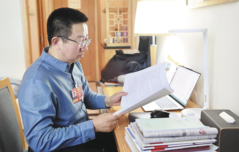 རྒྱལ་ཡོངས་སྲིད་གྲོས་ཀྱི་ཨུ་ཡོན་ཨེ་ཁྲུང་རུང་གིས་གྲོས་གཞི་ནན་ཏན་གྱིས་གྲ་སྒྲིག་བྱེད་བཞིན་པ།