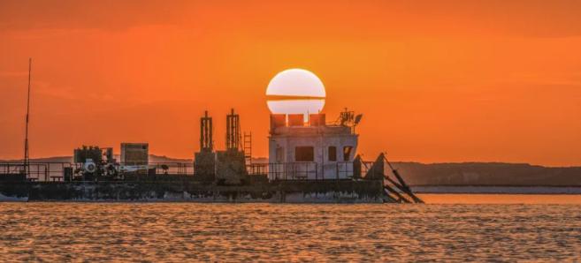 ས་སྲོས་ཀྱི་མཚམས་སུ་ཐག་རིང་གི་ཚྭ་མཚོའི་ཐོག་གི་ཉི་འོད་མཐའ་མ་དེ་ཚྭ་འདོན་གྲུ་གཟིངས་ཀྱི་དར་ཤིང་བརྒྱུད་དེ་གྲུ་གཟིངས་ཀྱི་གཟུགས་བརྙན་ཧ་ཅང་རིང་པོ་འཐེན་ནས་ཚྭ་ཐང་ཐོག་ཏུ་ཞུན་ཐིགས་ཆགས་བཞིན་པའི་ཚྭ་མེ་ཏོག་དང་མཉམ་དུ་འགུལ་ཞིང་འཚམ་པའི་རི་མོ་ཞིག་གྲུབ་ཡོད།
