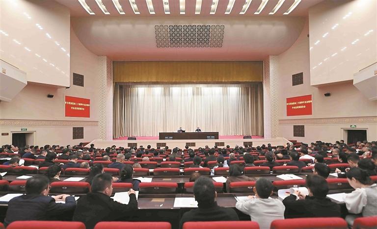ཏང་ཀྲུང་དབྱང་གི་གཅིག་གྱུར་བཀོད་སྒྲིག་ལྟར། ཟླ11པའི་ཚེས10ཉིན། ཏང་གི་སྐབས་ཉི་ཤུ་པའི་ཀྲུང་ཨུ་ཚང་འཛོམས་གྲོས་ཚོགས་ཐེངས་བཞི་པའི་དགོངས་དོན་སློབ་སྦྱོང་དང་ལག་བསྟར་བྱེད་པའི་ཀྲུང་དབྱང་སྒྲོག་འགྲེལ་ཚོགས་པའི་སྙན་ཞུའི་ཚོགས་འདུ་ཟི་ལིང་དུ་བསྡུས།